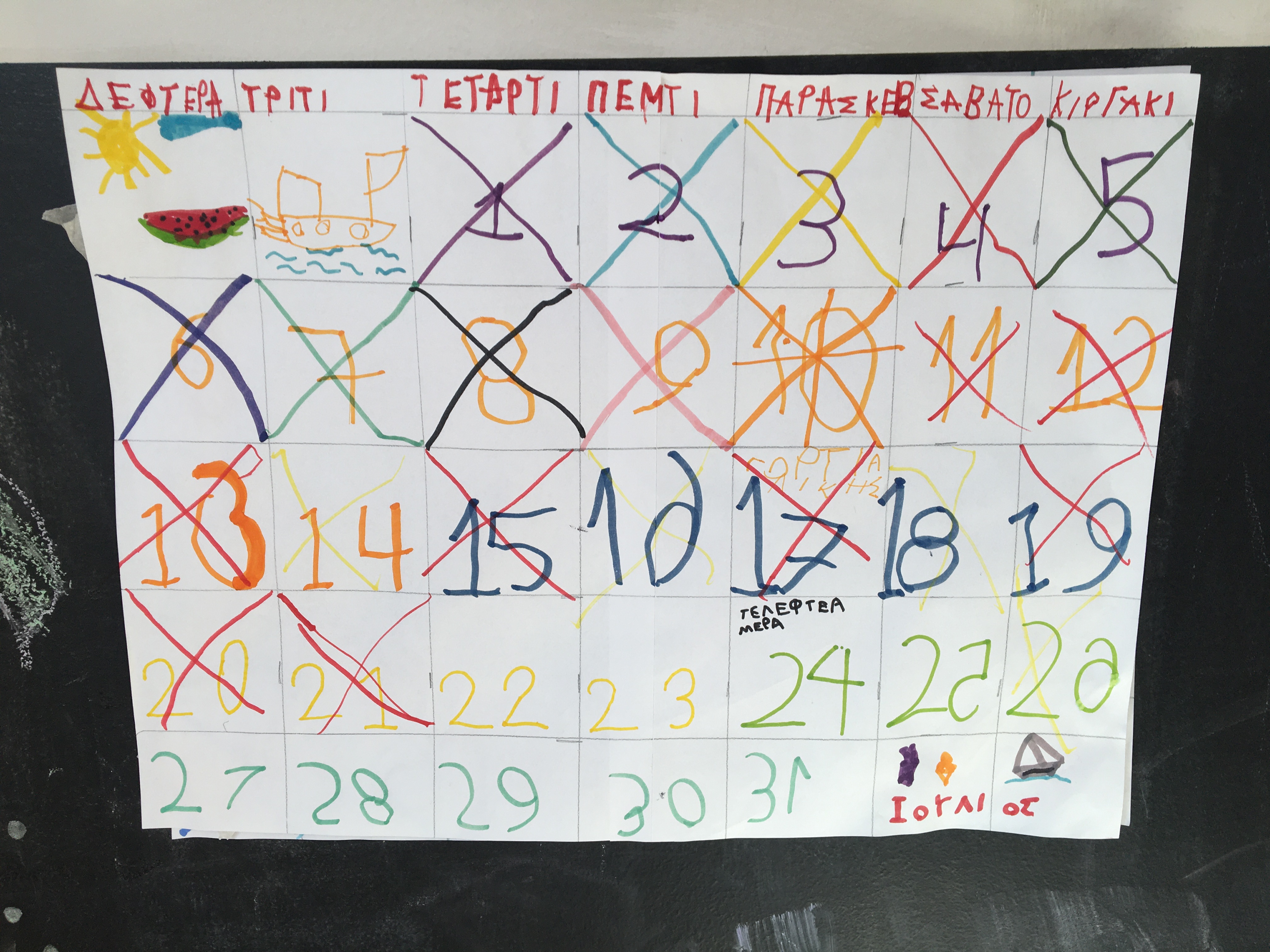 ….Φτιάξαμε το ημερολόγιο του Ιουλίου και σβήνοντας τις μέρες μία μία, μετράμε το χρόνο ως τις καλοκαιρινές μας διακοπές!!!….