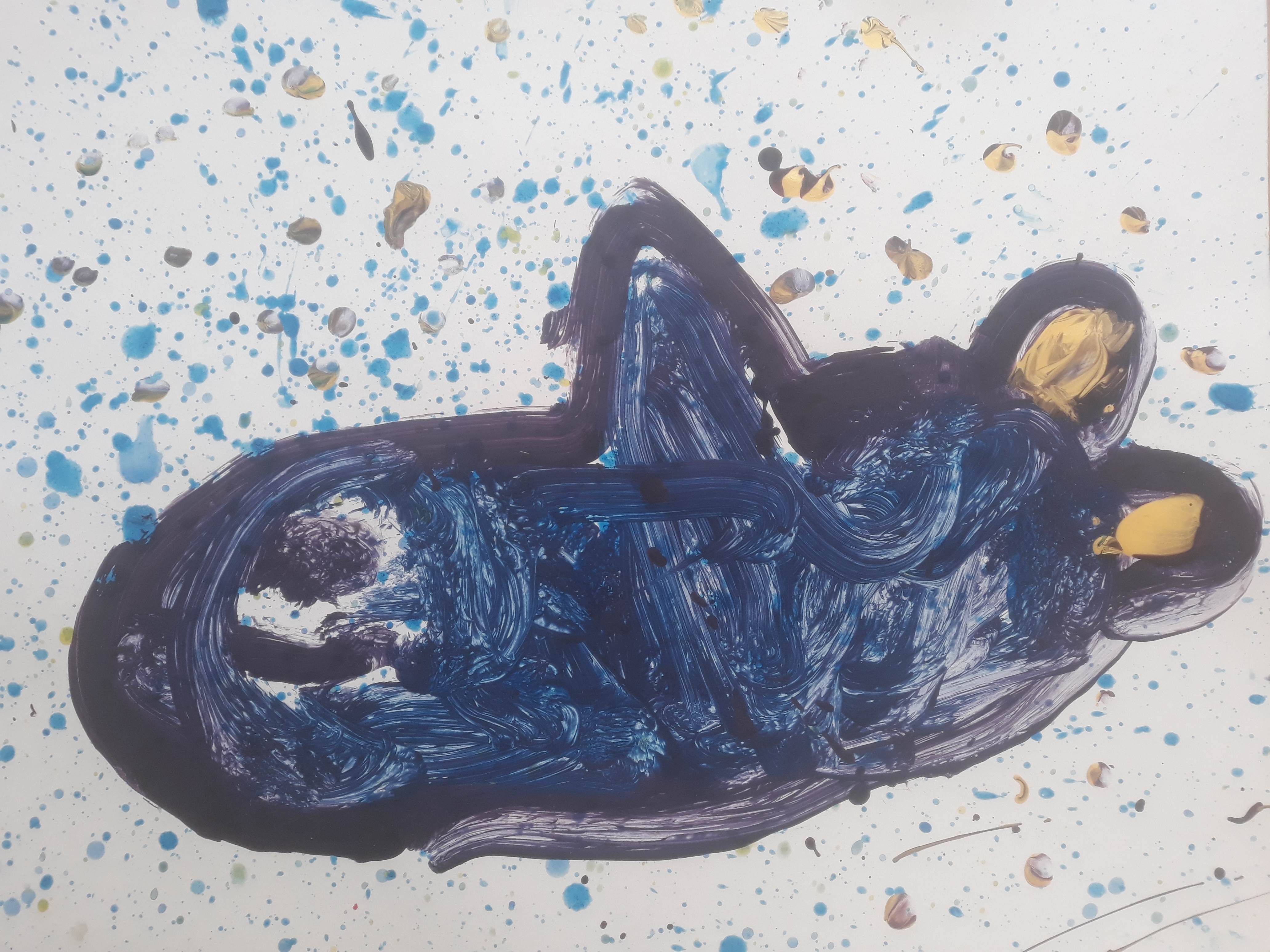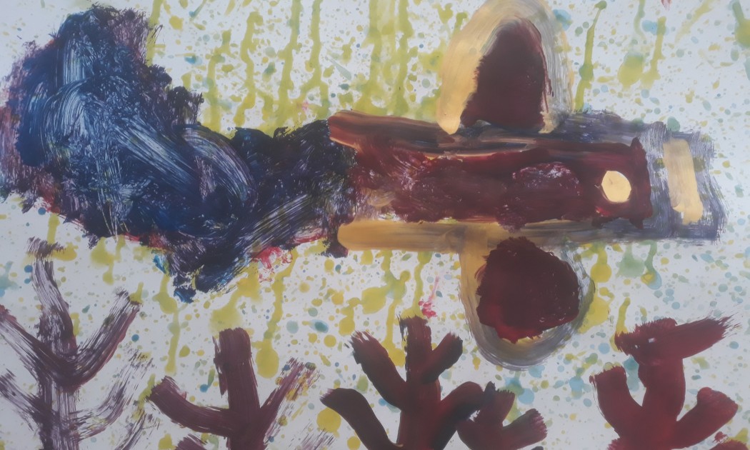 Έτσι φτιάξαμε στα εικαστικά έναν “πιτσιλωτό” βυθό που μέσα κολυμπάει ένα μικρό ψαράκι…